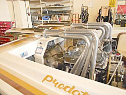 CASTLE HEADERS Custom built Headers for a Big Block Chev in a Speed Boat. Headers are made from Stainless Steel with 2 1/4in Primaries 4in merge-Collectors and 6in Stainless packed Mufflers.